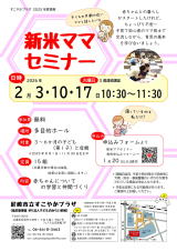 (火曜日・3週連続講座) 【要申込み】 新米ママセミナー 【申込み】 申込みフォーム より *1月20日(火) 締切 |